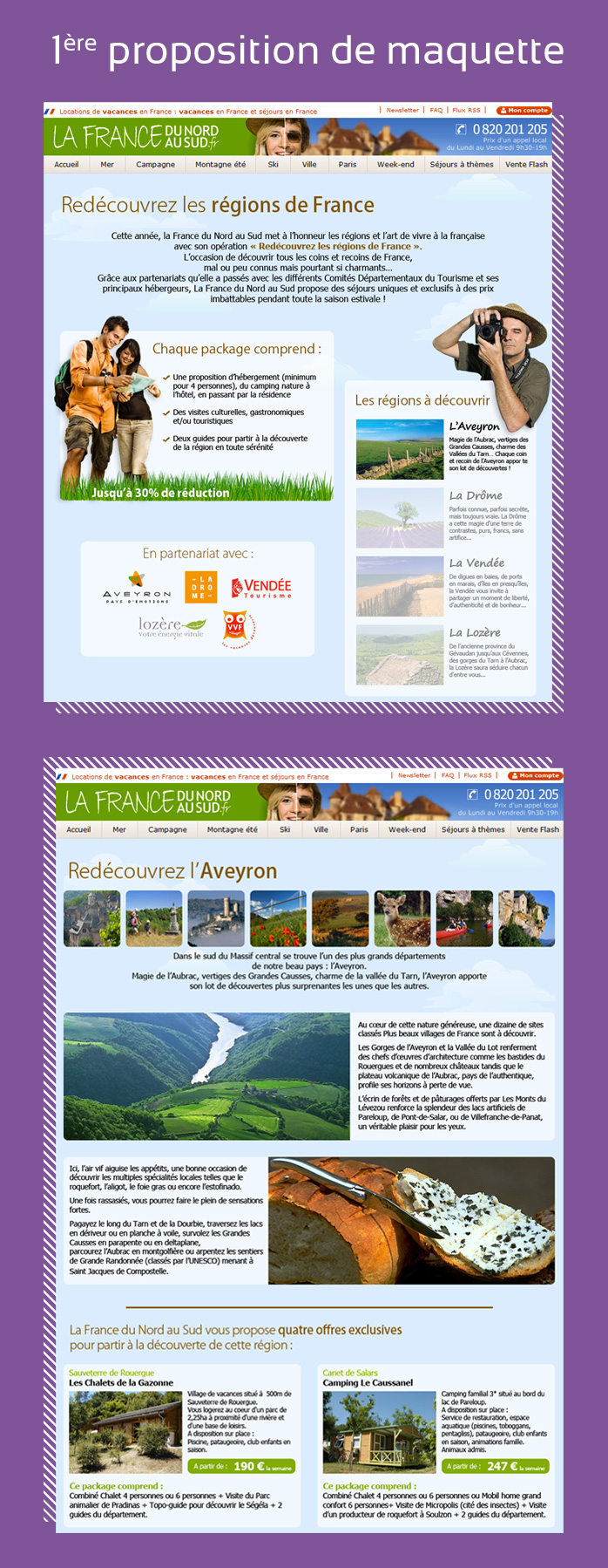 Mini-site dédié à la mise en avant d’une opération promotionnelle : offre packagée (hébergement + visites touristiques + guides de la région)